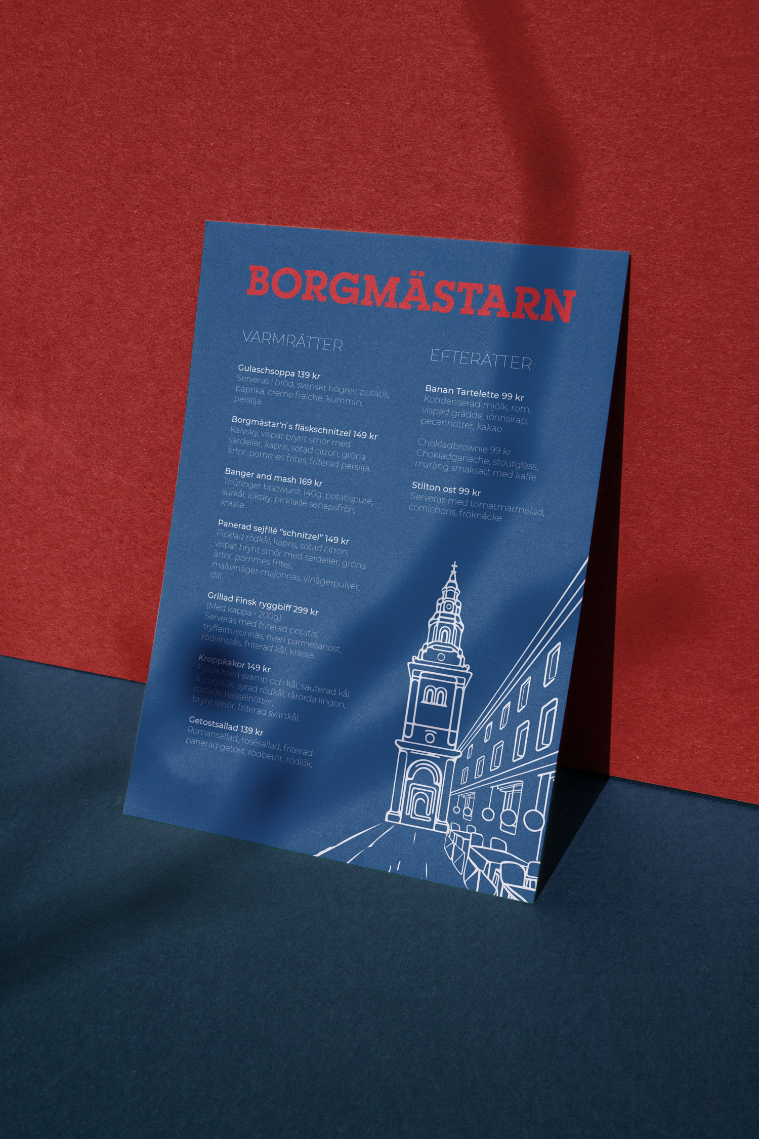 Ny visuell identitet, logotyp, färgpalett, typografi och webbdesign för Borgmästarn – en klassisk pub i Linköping som ville uppdatera sitt uttryck utan att tappa sin själ.